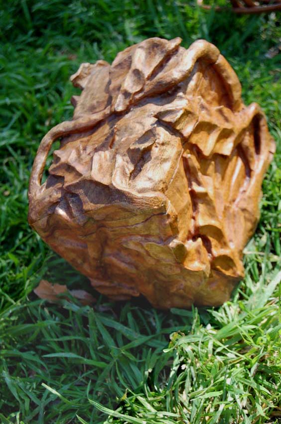También realizada en lenga, sus medidas son 20x20x30 cm