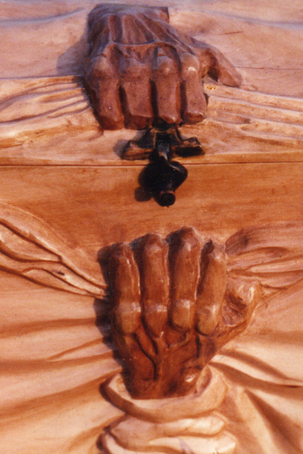 con tallas de hojas de roble